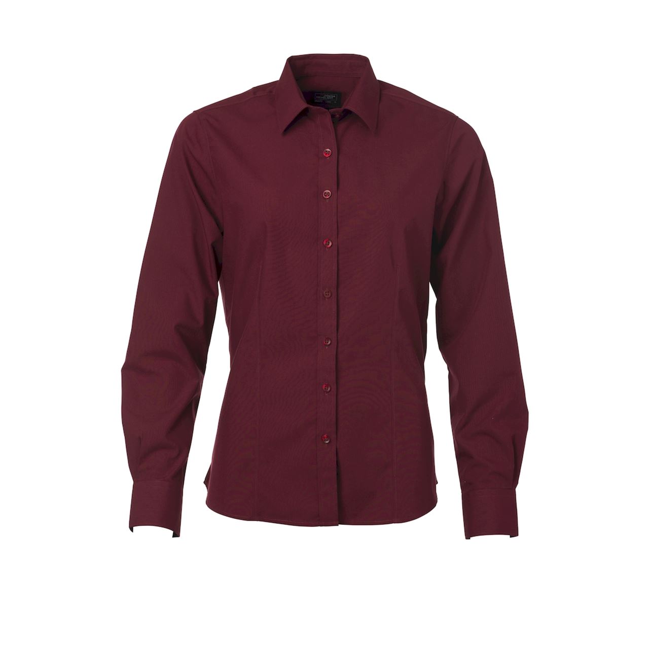 Camicia classica con tessuti misti easy care. Poplin easy care. Tessuto esterno (105 g/m²): 65% poliestere, 35% cotone, orlo arrotondato, taglio femminile avvitato, pieghe sul retro.